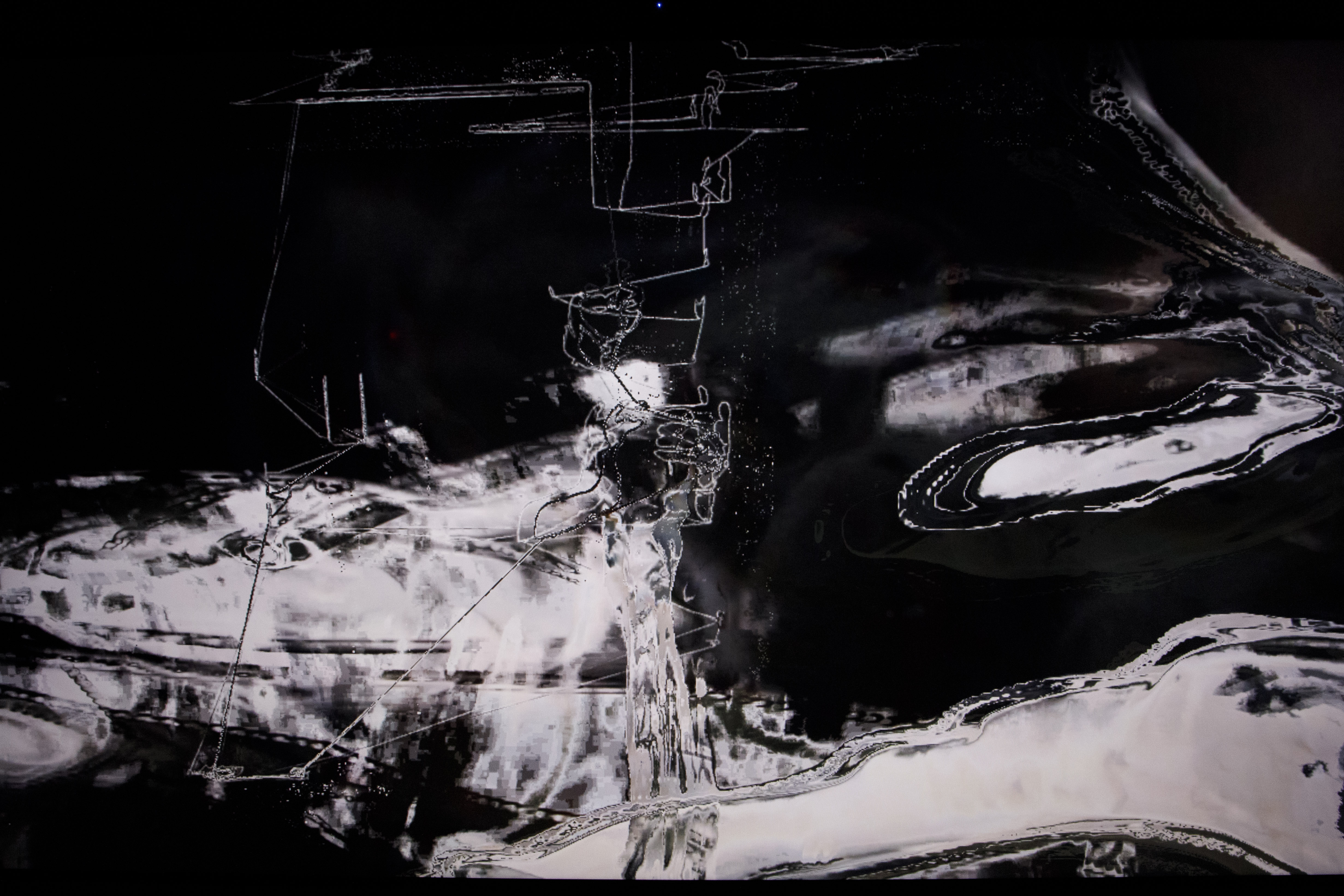 身体とデジタルメディアの偶発的な現象の空間に生まれる畏れと魅惑の感情体験と、その2つのメディウムの間の異なる次元に偶発的に生じる瞬間的な表象に着目し、「無我」の体験から個を超えた別の存在に移ろうプロセスに関心を向けてきた(個展”Imperf”, 2023)。この展示は、表象を機械視覚やデータ処理によって空間・時間的に再構築する試みである。同時にそれが人間的な感傷(プンクトゥム)や自我や自己を超えた存在論的領域に踏み込み、身体を含む全ての要素を計算可能な無数のデータポイントとしての表象が時間・空間・存在論に開かれていると考える。従来の人間主体、ナラティブ中心のアプローチから離れ、世界との関係を考える実験的な場とする。