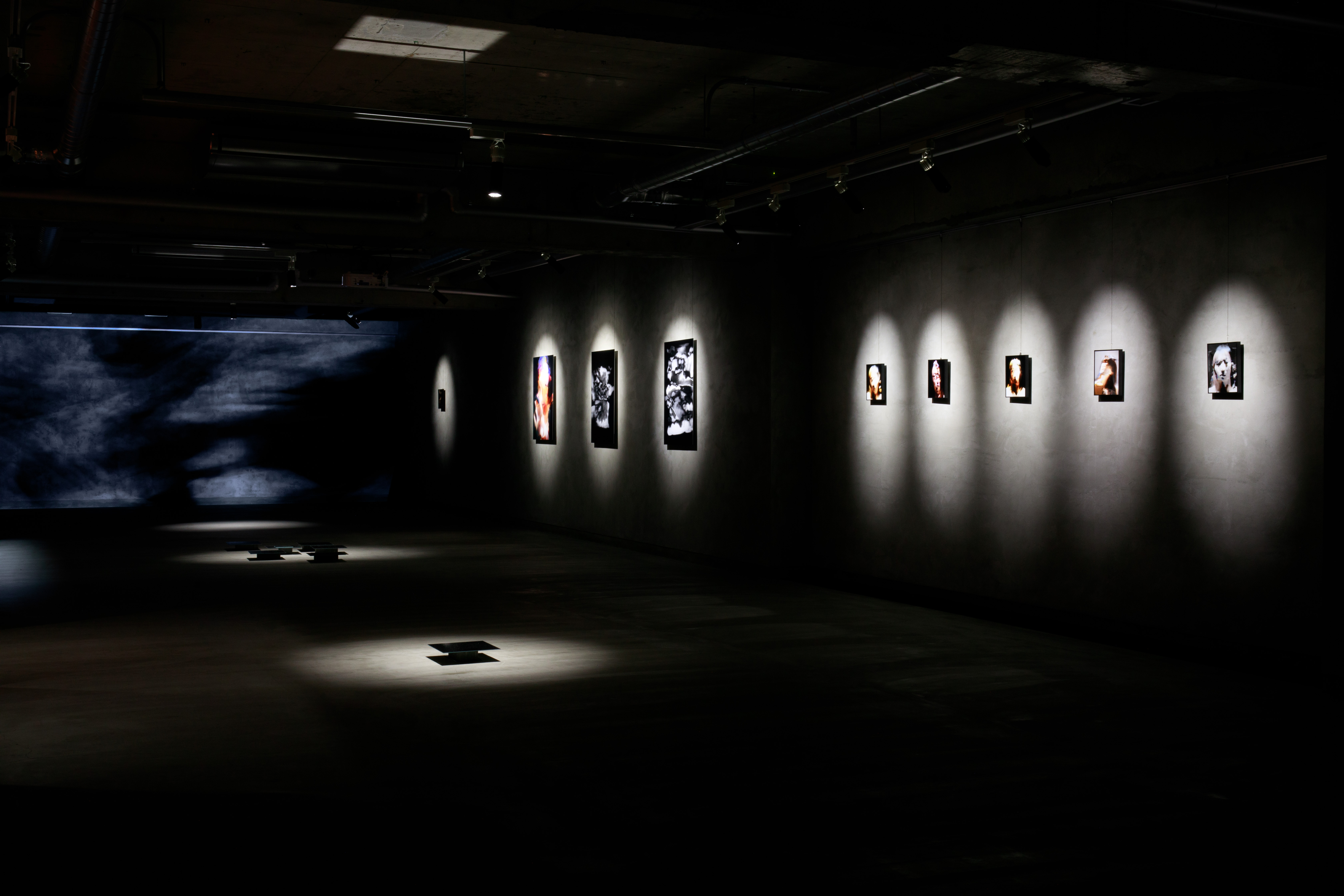 身体とデジタルメディアの偶発的な現象の空間に生まれる畏れと魅惑の感情体験と、その2つのメディウムの間の異なる次元に偶発的に生じる瞬間的な表象に着目し、「無我」の体験から個を超えた別の存在に移ろうプロセスに関心を向けてきた(個展”Imperf”, 2023)。この展示は、表象を機械視覚やデータ処理によって空間・時間的に再構築する試みである。同時にそれが人間的な感傷(プンクトゥム)や自我や自己を超えた存在論的領域に踏み込み、身体を含む全ての要素を計算可能な無数のデータポイントとしての表象が時間・空間・存在論に開かれていると考える。従来の人間主体、ナラティブ中心のアプローチから離れ、世界との関係を考える実験的な場とする。